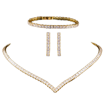 Set di Collana, Anello e Orecchini con Zirconia Cubica Geometrica - Gioielli Minimalisti di Lusso in 3 Pezzi